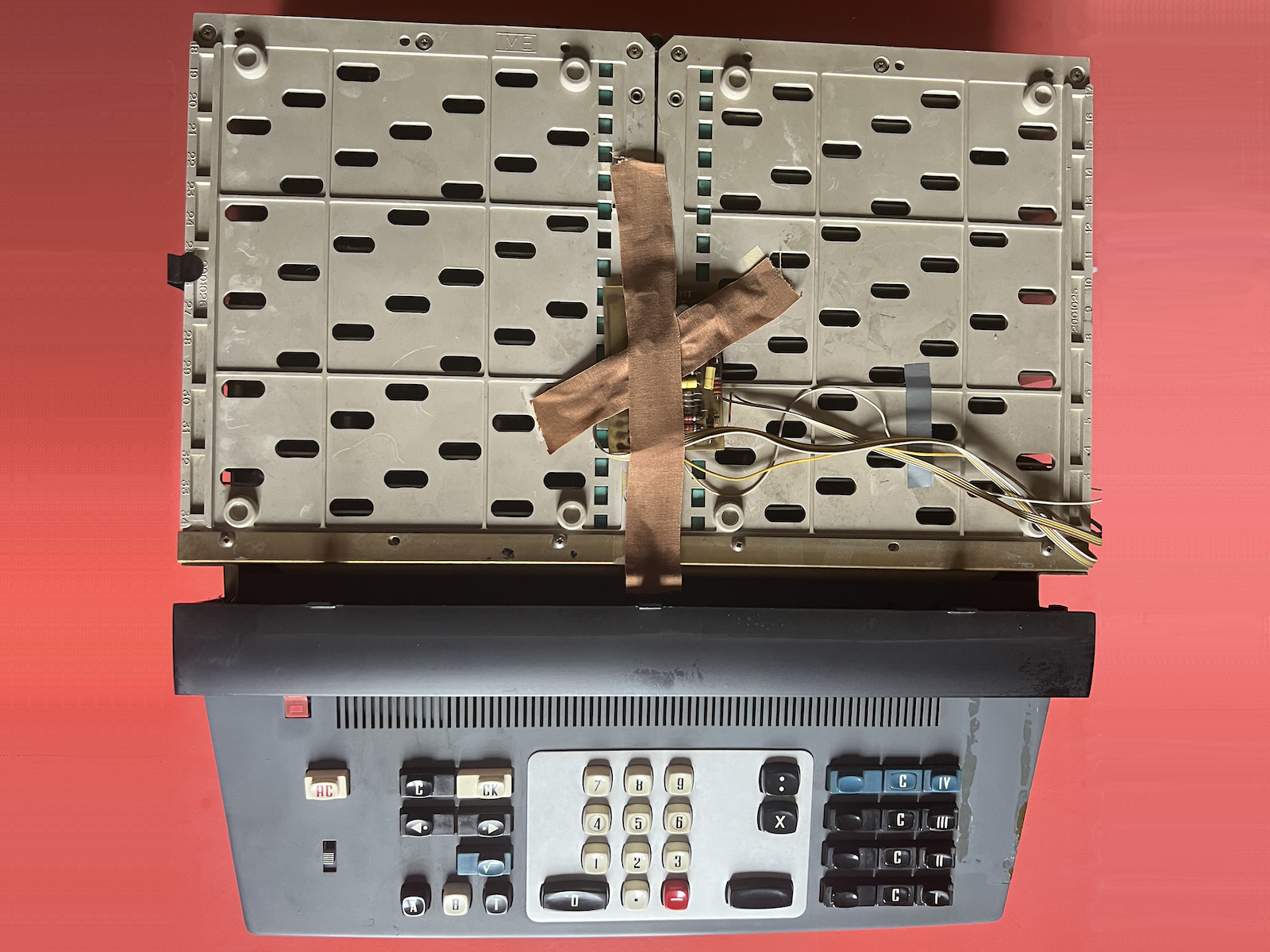 The small board taped to the top of the card-cage is the 4m modification to adjust the negation behaviour.